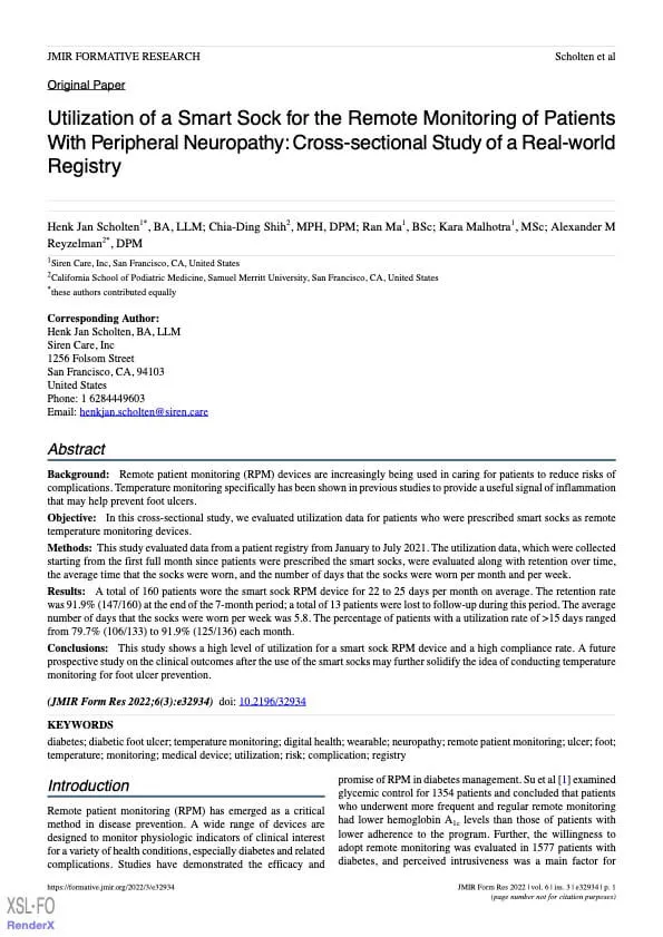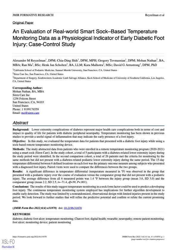Real-world evidence of Siren Socks showed an 83% risk reduction of diabetic foot ulcers, and a 68% reduced risk of amputations.